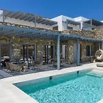 Roka Bonita Villa Mykonos Ftelia med 5 sovrum, som ligger inom 6 km från Mykonos väderkvarnar, har en privat pool för gästerna. Villan, som har en terrass, bjuder in gästerna att besöka Paranga strand, som ligger cirka 10 minuters bilfärd bort.